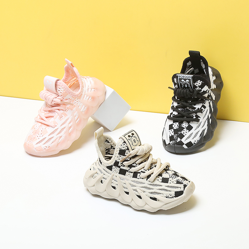 Mesh flyknit fabric upper design allows air flow to prevent children’s feet from overheating to keep them dry and fresh,good stretch allows the foot to secure fit.